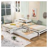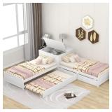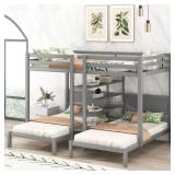 *****INCOMPLETE***** Triple Bunk Bed Full XL Over 2 Twin Bunk Bed with 4 Storage Shelves Wood 3 Beds Bunk Bed Frame L-Shape Bunked for Three Kids Teens and Adults, Gray