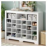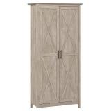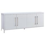 - Features 4 beveled doors with enclosed cabinets and 4-shelves for ample storage