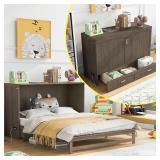 *****INCOMPLETE***** Queen Size Murphy Cabinet Bed with Built-in Charging Station and Large Drawer, Modern Murphy Bed for Kids Teens, Space Saving Design & Easy Assembly (Antique Gray)