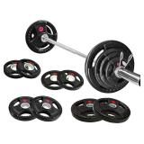 Signature Fitness Cast Iron Olympic 2-Inch Weight Plates Including 7FT Olympic Barbell