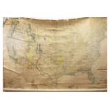 LARGE 1904 WALL MAP OF NORTH AMERICA 1904 Map of North America. Highlights the major cities for each of the States and other interesting places such as Indian Reservations. Paper map on cloth back with minor wear throughout the map. Size: 91", Est. 200-400, Lot: 32005