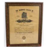 1907 CINCINNATI COLLEGE OF EMBALMING DIPLOMA Framed diploma from the Cincinnati College of Embalming. Issued to Dock R. Duell on March 29, 1907. Size: 21 x 25" (framed), Est. 40-80, Lot: 32006
