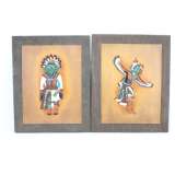 NATIVE AMERICAN LEATHER CRAFT ART BY RAY BRIGGS Two works of leather craft art by Southwest Native American Artist Ray Briggs. First piece show a Apache in traditional costume with mask. Vibrant colors with fine details. Second Piece is another Apache in traditional costume with vibrant colors and details. Has the Roman Numeral IV on each hand. Both signed by artist. Size: 19.5 x 15.5, Est. 100-200, Lot: 32007
