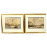 TWO FRAMED PRINTS GORDON GRANT BOAT SCENES Gordon Grant (American, 1875-1962), painter, specializing in maritime art. Two prints of watercolors by the San Francisco artist. Both are framed and double matted in matching frames under glass. Frames are gold, matting is cream and blue. Size: 16.5 x 19.5" (framed), Est. 20-50, Lot: 32012