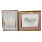 LOT OF TWO FRAMED PRINTS Lot of two framed prints - "Flight" print featuring dove in flight, Denise Harris 75/350 19" x 25"; "Lily Pad" triptych etching signature illegible 7/300 28" x 24". Size: See description, Est. 30-80, Lot: 32018