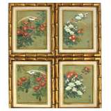 FOUR FRAMED ASIAN BIRD PRINTS Lot of four framed orange, white, and green Asian bird prints, signed bottom right. Framed under glass in golden bamboo frames. Size: 12 x 14" (framed), Est. 40-80, Lot: 32020