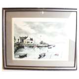P. G. LANGLOIS NUMBERED LITHO VENETIAN SCENE Limited edition, signed lithograph of Venetian scene. Framed and matted under glass. Some spotting on paper, matting does not appear to be acid free. Size: 28 1/2 x 34" (framed), Est. 50-100, Lot: 32024