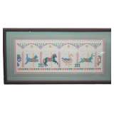 JANE BILLMAN PRINT ON EMBOSSED PAPER CAROUSEL Jane Billman (American, 20th Century). Framed lithograph, "Carousel Magic" on embossed paper by artist Jane Billman. Framed and float mounted under glass with double border. Limited edition, signed and numbered by artist. Size: 19 x 36" (framed), Est. 40-80, Lot: 32022