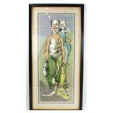 LE LITHOGRAPH FEUERBORN THE CLOWN Joseph Feuerborn (American, b.1929). Limited edition lithograph, "The Clown" by Joseph Feuerborn. Signature in plate. #40/50. Framed and matted under glass in black frame with gold bezel. Size: 22 x 45" (framed), Est. 40-80, Lot: 32026