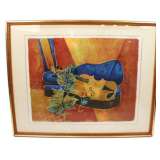 TONY AGOSTINI VIOLIN STILL LIFE SIGNED LITHOGRAPH Tony Agostini (French 1916-1990). Limited edition signed lithograph of still life, featuring violin. Framed and matted under glass. Signature bottom right, #210/275. Comes with authentication. Size: 29 x 23" (framed), Est. 30-60, Lot: 32027