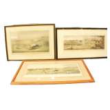 19TH CENTURY HUNT SCENE ENGRAVINGS Engraving by G.R. Stock of Edward Algernon Stuart Douglas's (British,1850 - 1920) three paintings entitled, "Slipped", "Coursing", and "The First Turn". Published in London, 1887 by Arthur Ackermann, 191, Regent Street, England. Size: 26 x 12" approx., Est. 100-200, Lot: 32028