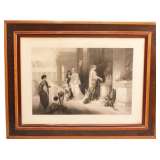 ENGRAVING LIBERALITE DES DAMES ROMAINES BALLIN Ballin, Auguste (French, 1842-1880). 1880 etching of "Liberalite des Dames Romaines" by French artist Auguste Ballin. The engraving appears to be in very good condition (not examined out of frame); however, the frame has a crack in the bottom. Size: 50 x 39" framed, Est. 100-200, Lot: 32030
