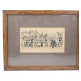 A LATE 19TH CENTURY ETCHING OF A RACING CROWD A race crowd according to C. Green. Framed in an oak frame. Size: 20" x 26" framed, Est. 30-50, Lot: 32033