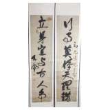 TWO CHINESE CALLIGRAPHY PAINTED SCROLLS SIGNED Lot of two Chinese painted silk scrolls featuring calligraphy. Both works are signed. Some creasing and discoloration to paper. Not framed. Size: Approx 69", Est. 40-80, Lot: 32035