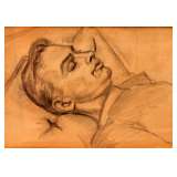 RECLINED MALE FIGURE PENCIL SKETCH Unknown artist, pencil sketch, reclining male figure. No visible signature. Framed and matted (suede mat) under glass. Size: 19 x 21" (framed), Est. 20-50, Lot: 32036