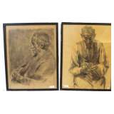 A. WATSON - PAIR OF PENCIL SKETCHES 2 carbon pencil drawings of old men. Signed bottom left. Early 20th century. Paper is toned on both. Size: 15 x 23" & 18 x 24" framed., Est. 40-80, Lot: 32037