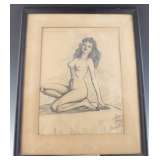 VINTAGE NUDE PIN UP GIRL SKETCH GRAPHITE ON PAPER Framed nude sketch of pin up girl on paper. Signed lower right, Helene Sabo. Framed and matted under glass. Some discoloration and foxing to paper. Not examined out of frame. Size: 19 x 15" (framed), Est. 50-150, Lot: 32038