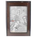 FRAMED CHINESE PORCELAIN TILE LANDSCAPE Chinese porcelain tile, signed, framed. Some damage to frame. Size: 14 x 20", Est. 100-300, Lot: 32039