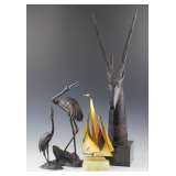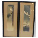 LOT OF TWO JAPANESE WATERCOLORS Two Japanese watercolors on paper. Framed and float mounted under glass. One features a sailboat, the other a heron in the rain. Sailboat is signed bottom right, title and author are printed in English below. Heron features two stamps, title and author (Kaho) are printed in English below. Size: 8 x 19" (framed), each, Est. 100-200, Lot: 32043