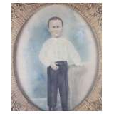 VICTORIAN WATERCOLOR PORTRAIT OF A BOY Victorian watercolor portrait of a boy child on paper. Framed under glass in gold frame with outer matting. Not examined out of frame. Some paint and gesso loss to frame. Size: 28.5 x 24.5" (framed), Est. 100-200, Lot: 32045