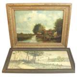 M. A. WILLIAMS & J. F. BROOKE PAINTINGS Oil on board signed bottom right M. A. Williams 1889, loosely framed 18 x 23". and a watercolor signed J. F. Brooke 98 framed and presented behind glass, 12 x 24". Size: N/A, Est. 50-100, Lot: 32048
