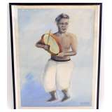 THORSEN OIL PORTRAIT OF DRUMMER KULUSK GREENLAND Canvas has been removed from stretcher and is framed in poster frame. Signed bottom right Poul Thorsen Kulusk '66. Size: 15 x 19", Est. 100-200, Lot: 32054