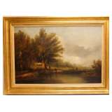 CHARLES P. PITT - 19TH C. OIL ON CANVAS PAINTING Charles Peter Pitt (English,19th Century). Oil on canvas of a country farm scene with anglers on a pond. Dated 1886 and signed bottom left. Mounted to a gilt frame. Good condition with small blemish to left side, midway down, approximately 2" in from edge of frame. Size: 26 x 35" framed, Est. 1000-2000, Lot: 32060