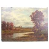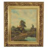 EDWIN COTE LANDSCAPE OIL ON CANVAS Edwin Cote (British, 19th century). Landscape scene by British artist Edwin Cote. Image features a cottage and pond. Size: 16 x 20", Est. 400-600, Lot: 32061