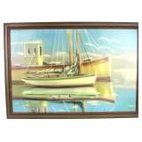 AL BLACK - FLORIDA HIGHWAYMEN PAINTING ON BOARD Albert "Al" Black (American, b. 1946). Two boats at sea with seagulls. Rare airbrush on board, framed. Signature bottom right, dated 1980. Size: 39 x 27" (framed), Est. 100-300, Lot: 32066