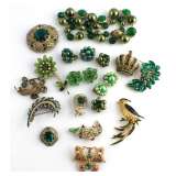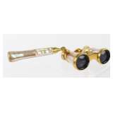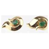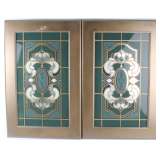 PAIR OF PAINTED/ETCHED GLASS DECORATIVE PANELS Two framed glass panels in gold colored frames. Some scratching to frames. Glass panels are painted green from behind and feature etched glass accents. 15 x 23" each. Size: 15 x 23" each, Est. 50-150, Lot: 32068