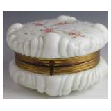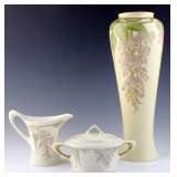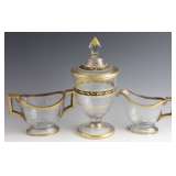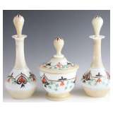 THREE PIECES OF DECORATED HEISEY GLASS A milk jug, a sugar basin and a lidded jar. Size: Up to 9" tall, Est. 40-80, Lot: 32069