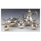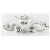 CZECHOSLOVAKIAN TEA SET This set includes 1 large teapot, 1 cream pitcher and sugar caddy, 5 teacup and saucer sets, 7 dinner plates, and 1 extra saucer. Size: 2 1/2''-6'', Est. 30-60, Lot: 32081
