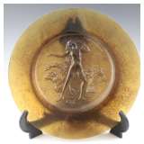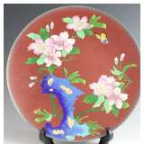 CHINESE CLOISONNE PLATE - LIGHT BROWN & FLORAL A brass base plate with light brown base with flowers and butterflies. Size: 10" diameter, Est. 30-50, Lot: 32165