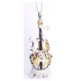 LARGE PORCELAIN VIOLIN AND CHERUB LAMP Large hand painted violin and cherub lamp. Filled with floral designs and vibrant color. The lamp sits upon the original base. Some flowers have been chipped and the violin strings need to be restrung. Size: 45", Est. 40-80, Lot: 32111