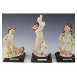 LOT 3 ARMANI'S LITTLE TREASURES PORCELAIN FIGURES 3 porcelain figures from the Armani's Little Treasures Collection. Little girl with school books, a little boy on a train with a puppy, and a little girl with bunnies. Size: 5-6.5" tall, Est. 30-60, Lot: 32113