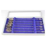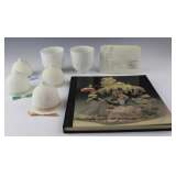 LLADRO PORCELAIN CUPS BELLS PLAQUE AND BOOK Grouping of 8 items from Lladro. Collectors Society plaque (only item not in box). 2 Cups "Sailing the Seas" #17657 and "Dolphins at Play" #17658. The 4 seasons bells and "The Art of Porcelain" Lladro book. Size: Varies, Est. 30-60, Lot: 32116