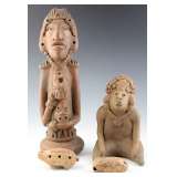 SOUTH AMERICAN POTTERY MIXED LOT This lot of South American pottery includes to effigies, a whistle, and a rattle. The items were hand dug by the consignors aunt in the 1960's. Overall good condition with wear appropriate for age. Size: 2.5" - 13.5", Est. 100-200, Lot: 32131