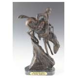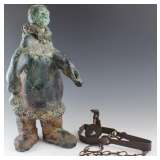 NATIVE AMERICAN TRAP AND FIGURE Oneida Victor 1 1/2 Spring Load Trap Functioning early 19th century small animal spring loaded trap made by Oneida, Victor model. Trap has one spring arm and a stake chain of 16" in length. There are worn brand markings on the trigger. 5" diameter, 9.5" in length. Alaskan Ceramic figure of a lady. Signed at the bottom "Dixie Daisy" 16". Size: 5" diameter, 9.5" in length, Est. 25-50, Lot: 32139