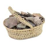LOT ANCIENT FLORIDA NATIVE AMERICAN POTTERY SHARDS Lot of ancient Florida Native American Pottery Shards in wicker basket. Some shards are decorated with faded pigment colors. Some shards date back thousands of years and some are Weeden Island examples. Size: varied, Est. 25-100, Lot: 32143