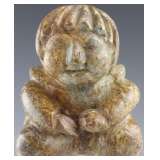 INUIT STONE CARVING Inuit stone carving of a seated figure in hooded clothing. Size: 5 1/4" x 4 1/8", Est. 25-100, Lot: 32150