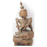 THAI WOOD TEMPLE BUDDHA CARVING Wood Carving from up-country Thai Temple or place of worship. Purchased by consigner in Thailand in 1974. It has several bored holes, including two in front, where the statue was mounted. The consigner had the face carved in low profile as the original was worn smooth when purchased. Size: 24.5 x 12.25 x 3.5", Est. 100-200, Lot: 32152