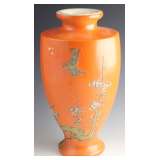 JAPANESE ORANGE GLAZE STONEWARE VASE Hand painted orange glaze vase. By Miyako, Japan. Size: 12.5" tall, Est. 50-100, Lot: 32156