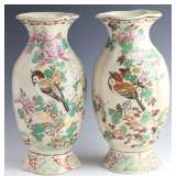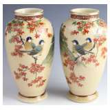 LATE 19TH CENTURY JAPANESE STONEWARE VASES Heavy stoneware vases hand decorated with birds and flowers. Size: 10" tall, Est. 50-100, Lot: 32157