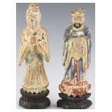 TWO CHINESE WOOD TEMPLE FIGURES Two old, painted wood Chinese figures on modern wood stands. Size: 6" tall, Est. 150-300, Lot: 32158