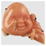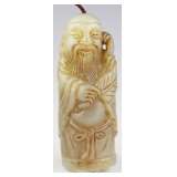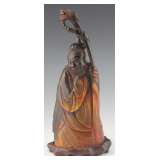 EARLY 20TH CENTURY CHINESE CARVED HORN FIGURE Chinese carved deity figure of Lohan. Finely carved from buffalo horn. Size: 7.5" with stand., Est. 100-200, Lot: 32159