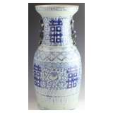 18TH CENTURY CHINESE STONEWARE BLUE & WHITE VASE A large Chinese vase hand painted. Size: 16.5" tall, Est. 100-200, Lot: 32161