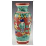 CHINESE HAND PAINTED EARTHENWARE VASE Chinese pottery vase, figural landscape, painted in green blue and rust glaze. Signed on bottom. Size: 6", Est. 50-80, Lot: 32162