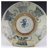 TWO LARGE CHINESE BLUE & WHITE CHARGERS Two large blue and white china plates / bowls. With country scene hand painted in blue. Size: 14" diameter, Est. 100-200, Lot: 32160