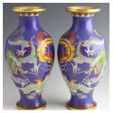 FINE PAIR OF CHINESE CLOISONNE VASES Brass base with blue background, decorated with dragons and birds of paradise. Size: 8.25" tall, Est. 50-100, Lot: 32167