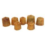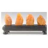 FOUR TIANHUANG STONES WITH WOOD STAND Lot of four natural boulder tianhuang stones ranging from 1.4 - 1.7" high, with wooden stand. Size: 1.4 - 1.7", Est. 450-650, Lot: 32174